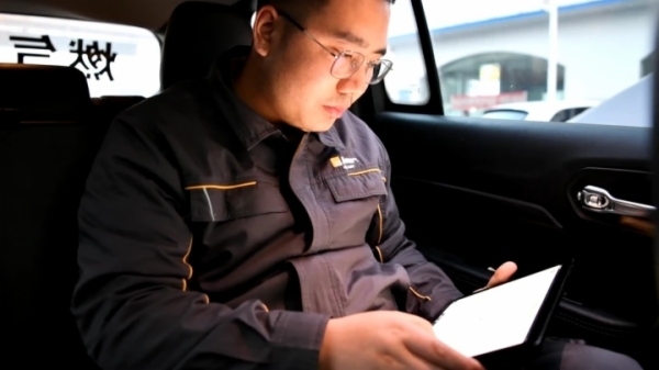 技術(shù)人員通過檢測(cè)車進(jìn)行燃?xì)庑孤z測(cè)。(圖片由通訊員郭良潔提供)