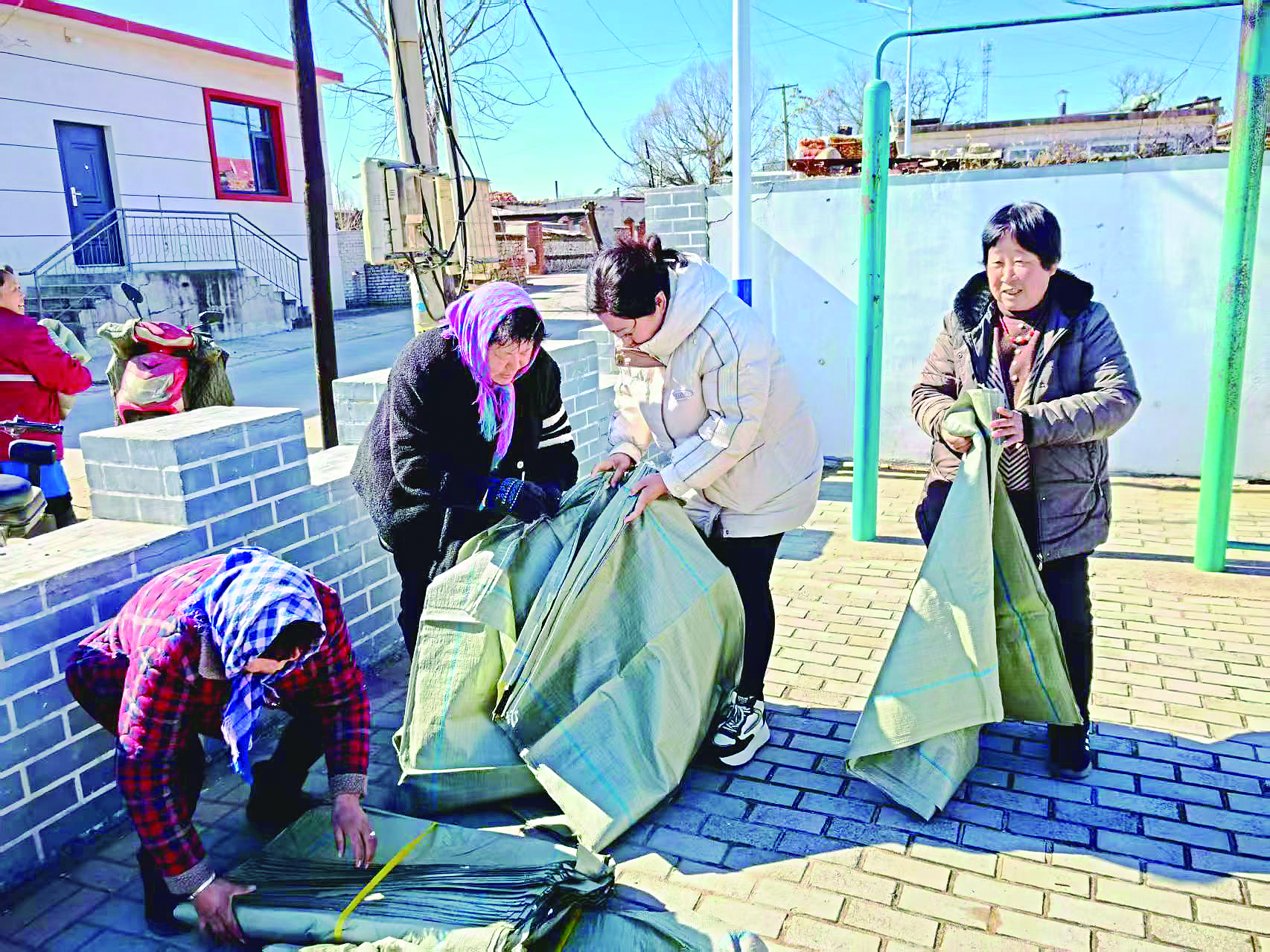 村民們分發(fā)包裝袋,為收集秸稈碎屑等物品作準備。 (圖片由臺營鎮(zhèn)提供)