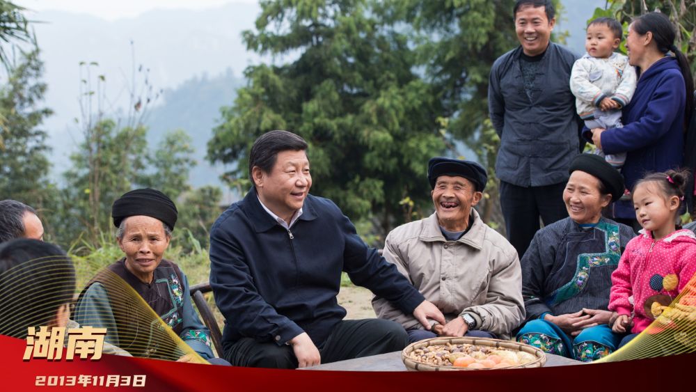 2013年11月3日,習(xí)近平來(lái)到湖南省湘西土家族苗族自治州花垣縣十八洞村。在苗族貧困村民施齊文家中看望時(shí),習(xí)近平坐下來(lái)同一家人算收支賬,詢問(wèn)有什么困難、有什么打算,勉勵(lì)一家人用勤勞和智慧創(chuàng)造美好生活。隨后,習(xí)近平同村干部和村民代表圍坐在一起,親切地拉家常、話發(fā)展,聽(tīng)村民們談變化、講困難、道實(shí)情。