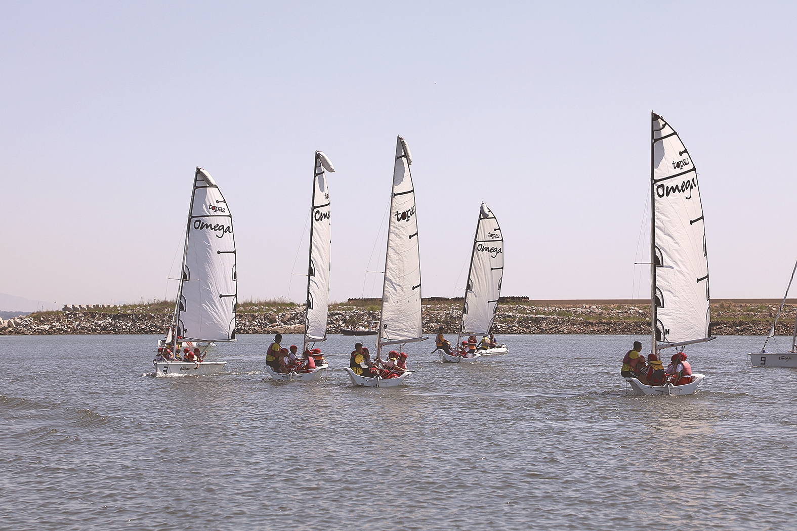 小學(xué)生參加帆船體驗(yàn)活動(dòng)。