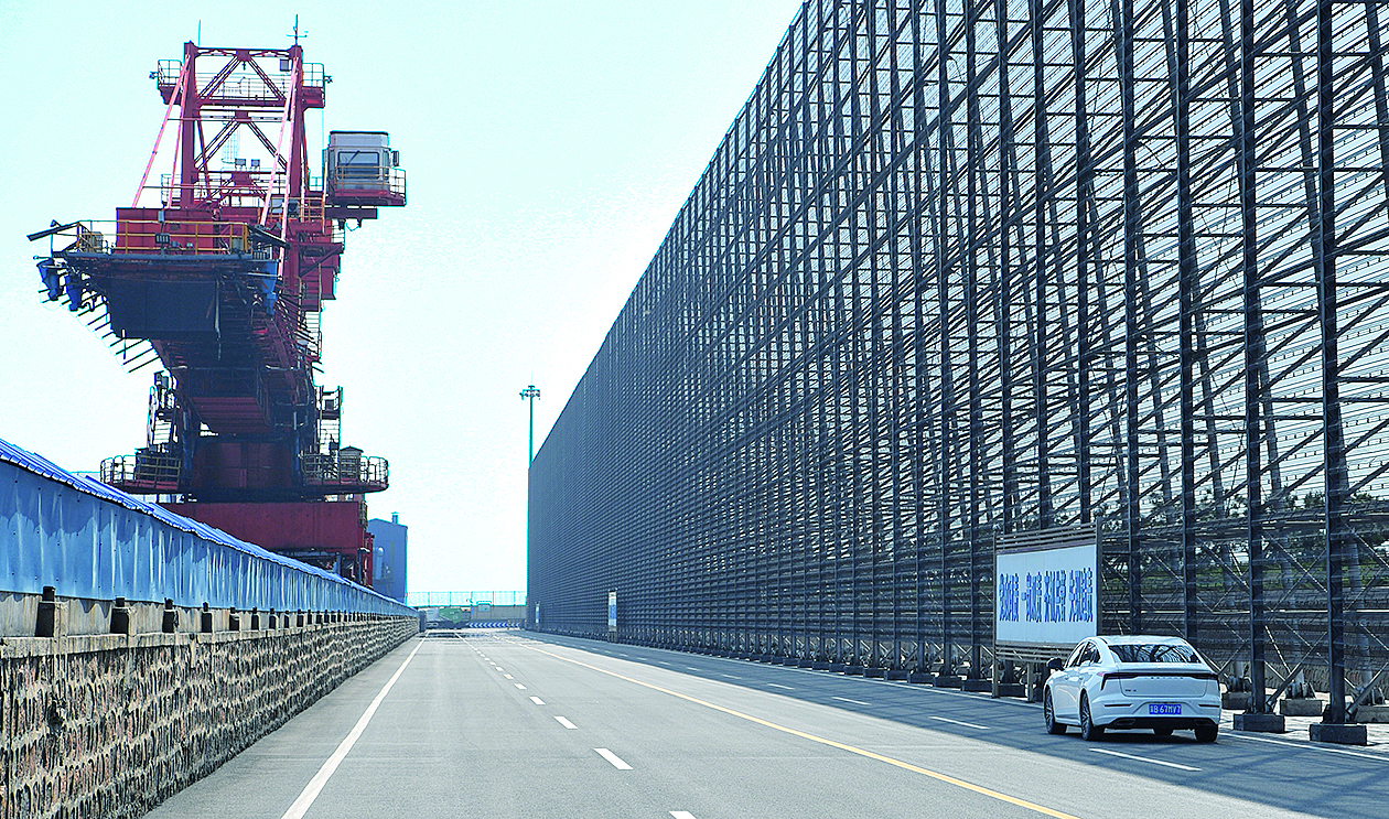 經(jīng)過(guò)封閉式皮帶運(yùn)輸,煤炭運(yùn)送到防風(fēng)網(wǎng)合圍的港口堆場(chǎng)。秦皇島港股份有限公司(以下簡(jiǎn)稱“秦港股份”)衛(wèi)生環(huán)保部高級(jí)經(jīng)理王帥介紹,港區(qū)的主要污染物是煤炭大顆粒物,為減少揚(yáng)塵擴(kuò)散,封閉式輸煤皮帶覆蓋全域,各個(gè)轉(zhuǎn)接點(diǎn)都有除塵設(shè)施。卸車機(jī)、堆料機(jī)、取料機(jī)等設(shè)備上的除塵系統(tǒng)隨設(shè)備同步運(yùn)轉(zhuǎn),與穿梭于堆場(chǎng)的智能灑水車、吸塵車共同防塵抑塵。另外,港口堆場(chǎng)的防風(fēng)網(wǎng)高23米、全長(zhǎng)9000余米,其設(shè)計(jì)經(jīng)過(guò)風(fēng)洞試驗(yàn),能有效降低堆場(chǎng)風(fēng)速,整體抑塵率可以達(dá)到95%以上。