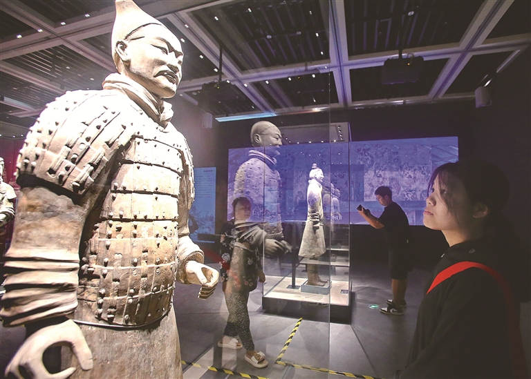 市民在秦皇島博物館參觀兵馬俑。