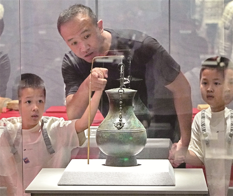 和同學(xué)一起來看展的史惠楠說:“這些展出的文物仿佛為我打開了時(shí)空之門,真的讓我有了一種電影《神話》中的那種時(shí)空交錯(cuò)感?!?/p>