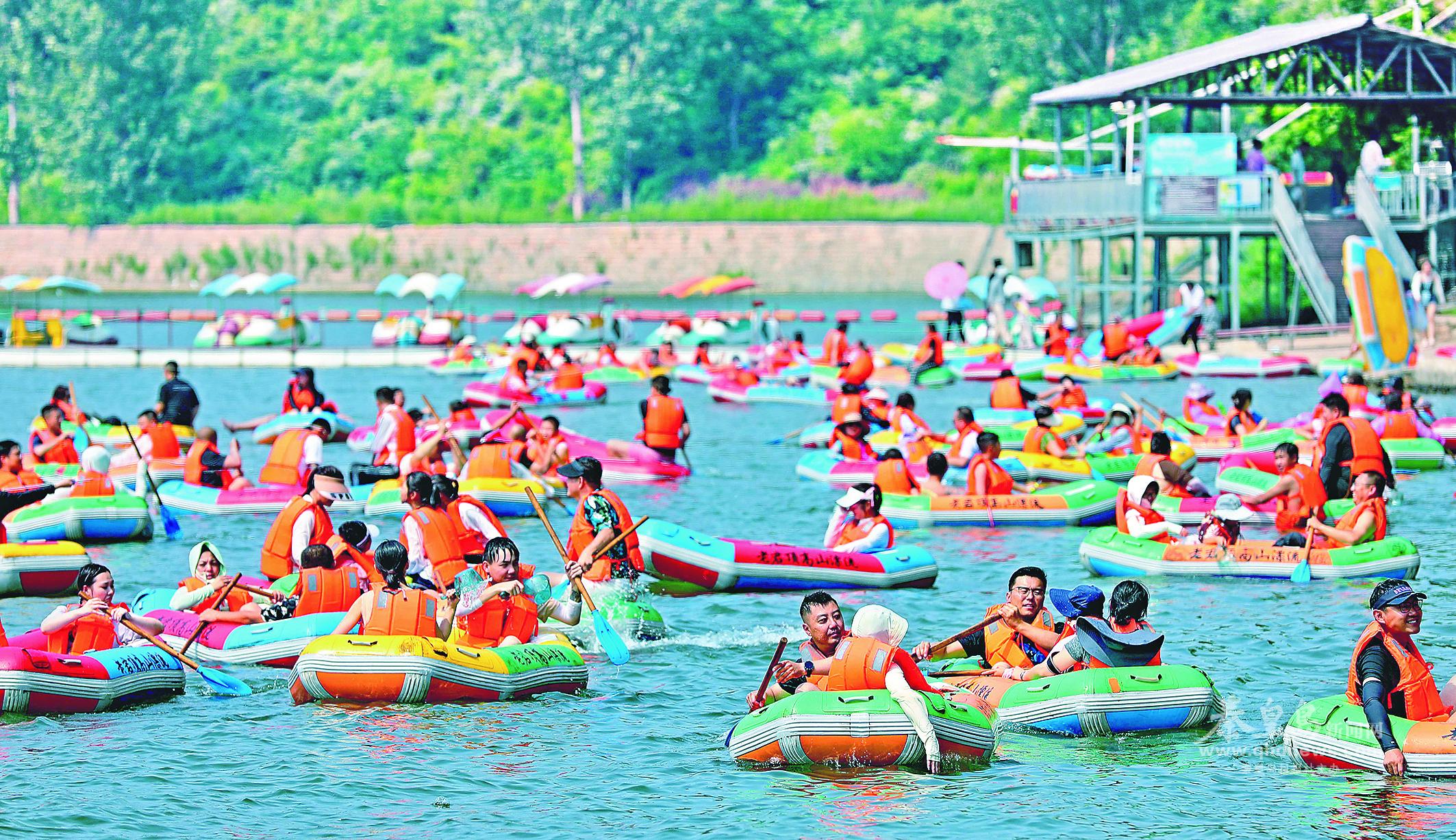 7月13日,游客在位于房莊村的老君頂景區(qū)體驗漂流等游樂項目。記者 李鐸 通訊員 曹建雄 攝