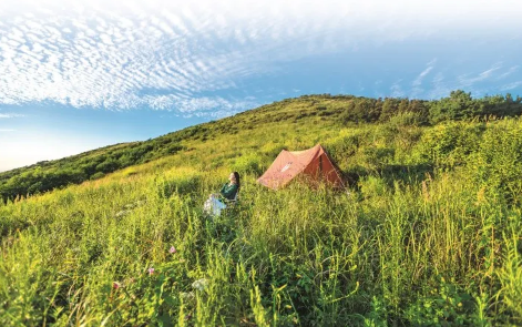 夏天,在野花爛漫的空中草原支起帳篷,享受清涼。