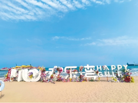 漫步歡樂灣,每一步都像是踏在詩行上。沙灘上的兒童樂園傳來銀鈴般的笑聲,美食街飄散著人間煙火的香氣。最令人心醉的,是那七座被鮮花簇擁的海上花島,宛若調(diào)色盤,在海面上繪就一幅流動的油畫。當潮水輕吻礁石,飛鳥掠過桅桿,整個歡樂灣便成了海天之間的抒情詩。