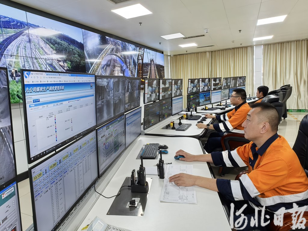 8月14日,秦港股份調(diào)度指揮中心的集控中心,多個(gè)角度的攝像頭將翻車機(jī)的實(shí)時(shí)圖像清晰投映在大屏幕上。隨著司機(jī)按下按鈕,3節(jié)火車車廂翻倒,滿載的煤炭瞬間傾落。