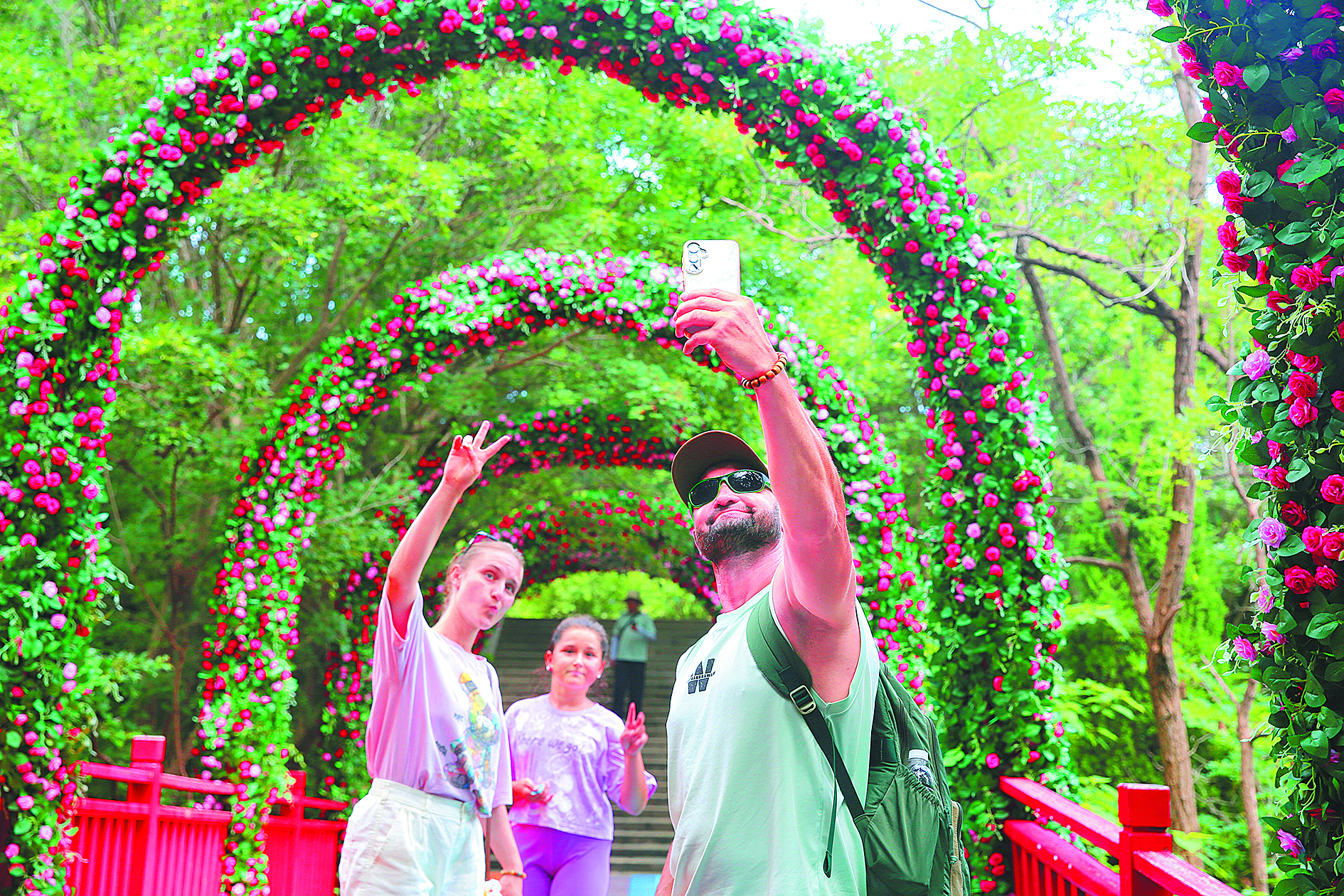 外國(guó)游客在山海關(guān)角山景區(qū)內(nèi)拍照打卡。 (圖片由山海關(guān)區(qū)提供)