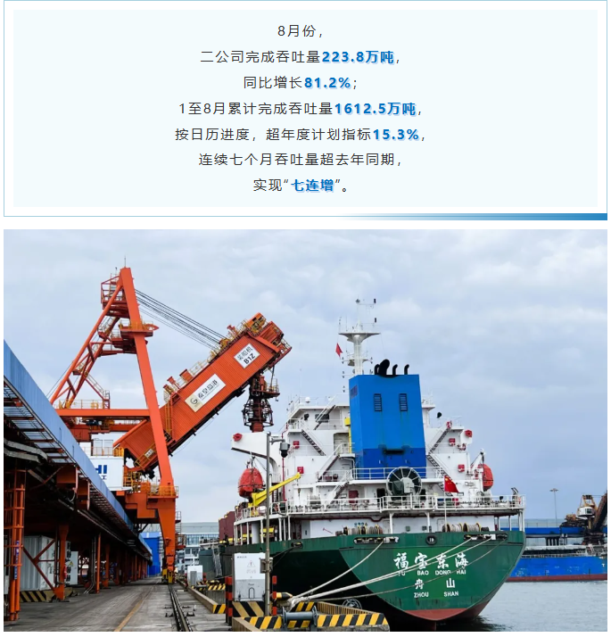 秦皇島港股份有限公司 | 同比增長(zhǎng)81.2%!秦港股份二公司月度吞吐量實(shí)現(xiàn)同比“七連增”