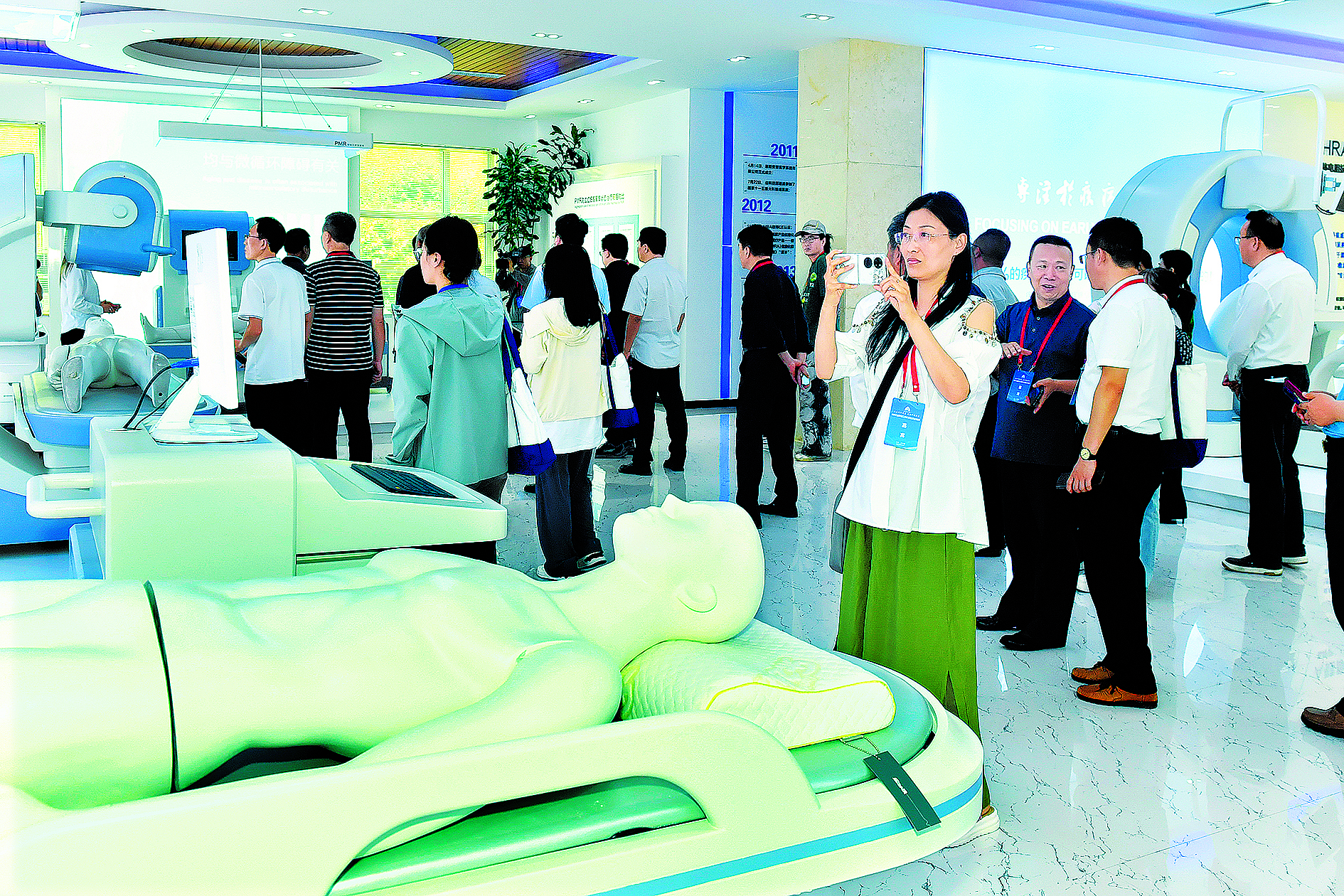 科技系統(tǒng)工作人員到惠斯安普公司展廳參觀生物醫(yī)學(xué)儀器。 記者 張偉 攝
