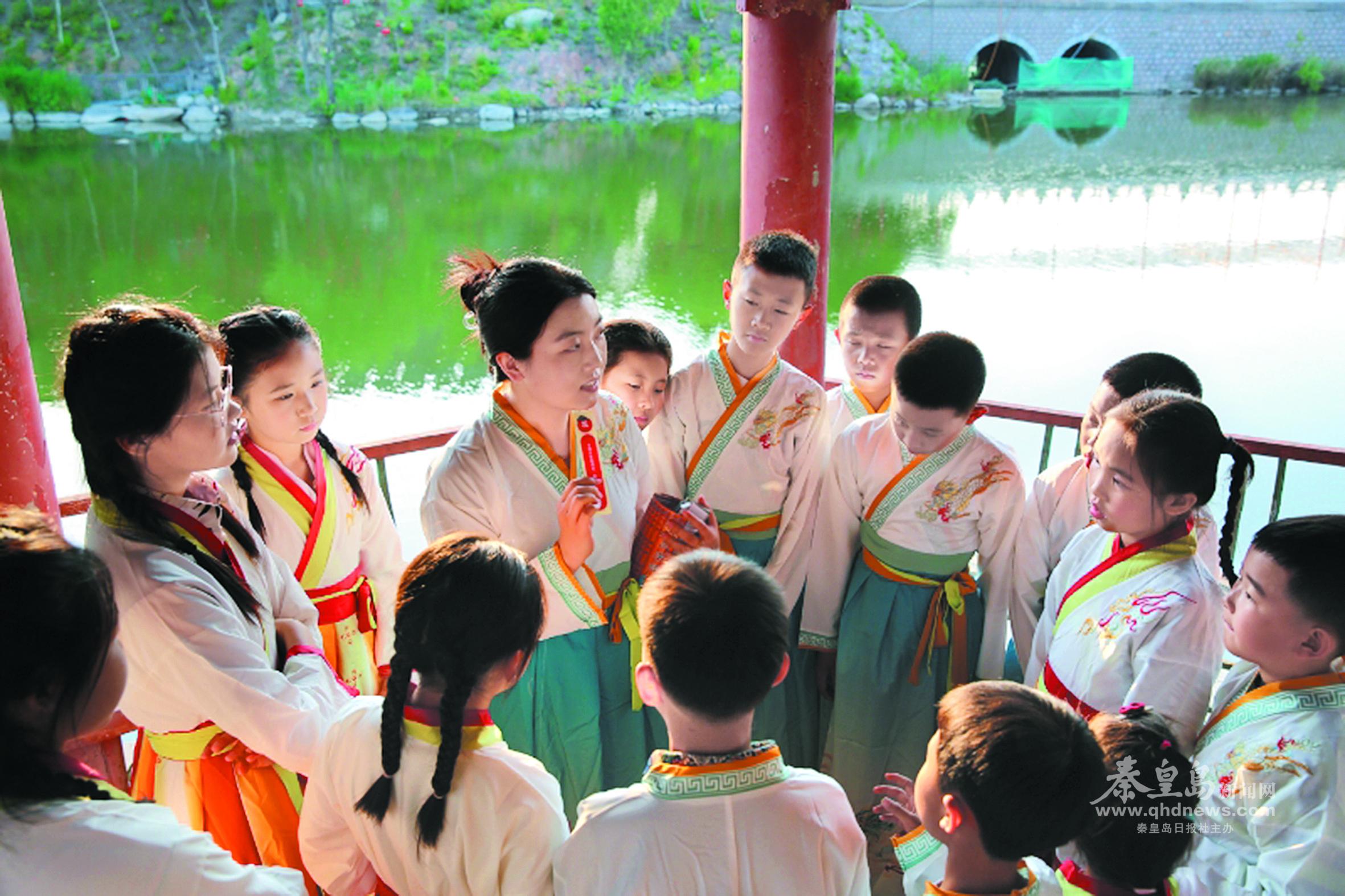 山海關“夢幻詩游”研學活動中,孩子們身著漢服與老師互動。(資料片)