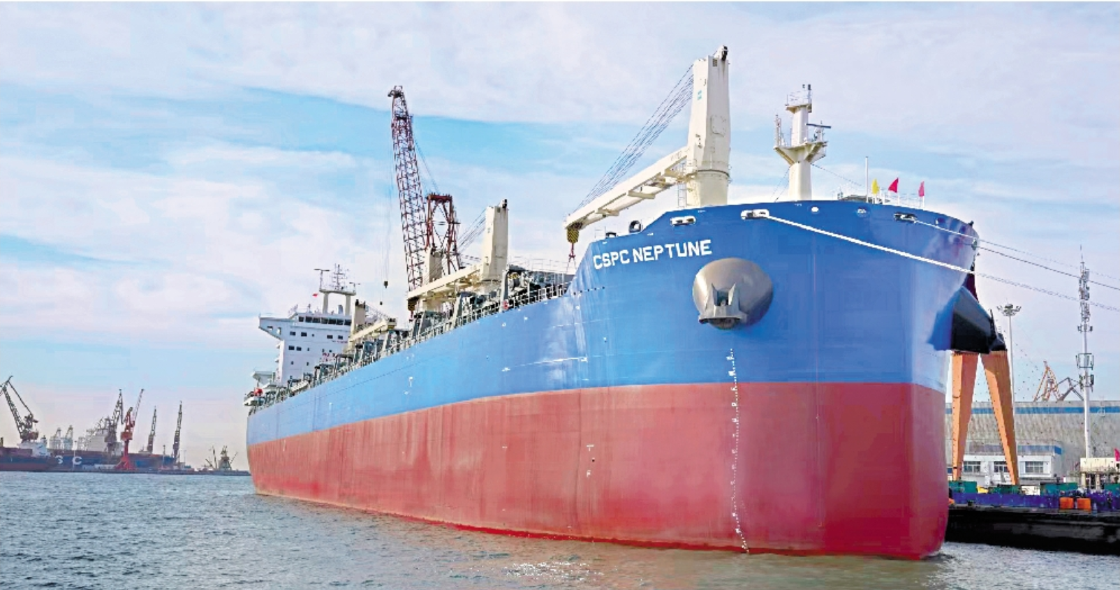 為中國制造出海打造“海上移動貨倉” 全球最大多用途紙漿船在秦皇島交付