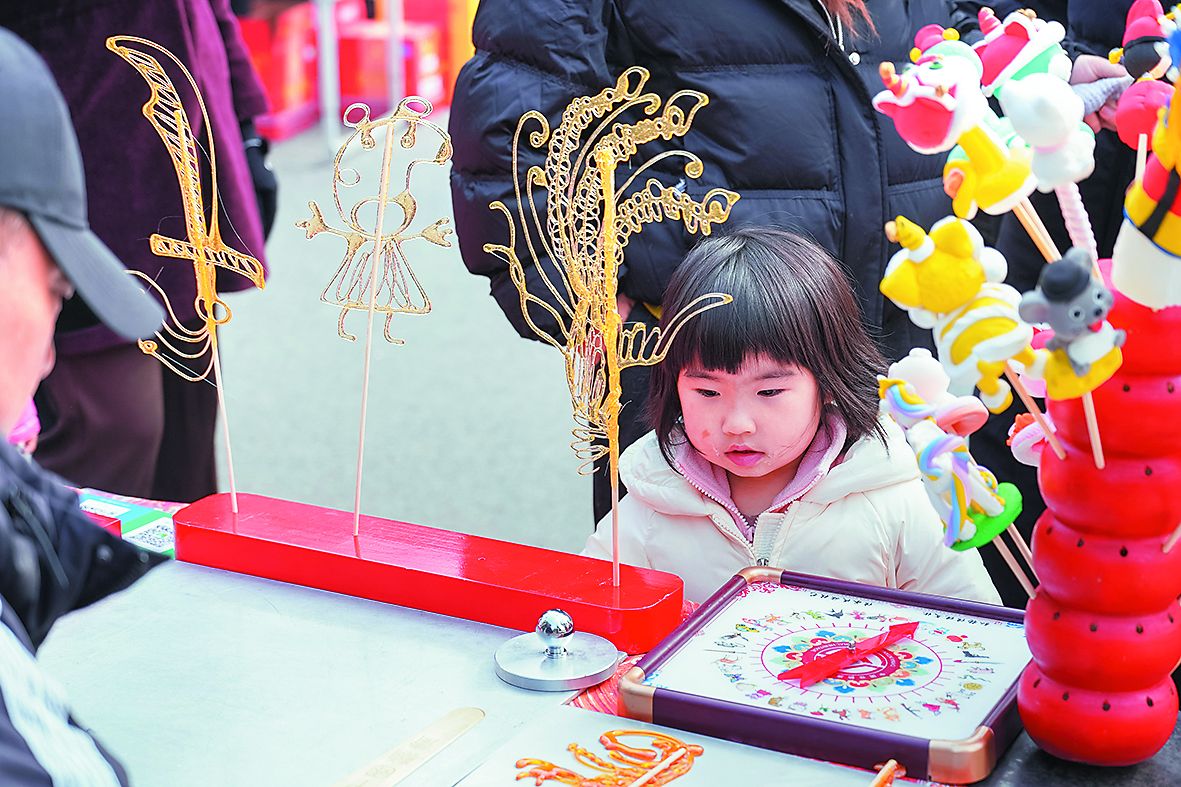 市民韓雪興致盎然地帶著女兒學(xué)習(xí)剪紙,她說:“正好趕上非遺活動,讓孩子親手體驗一下,感受我小時候的過年氛圍,這年味兒一下就濃了。”