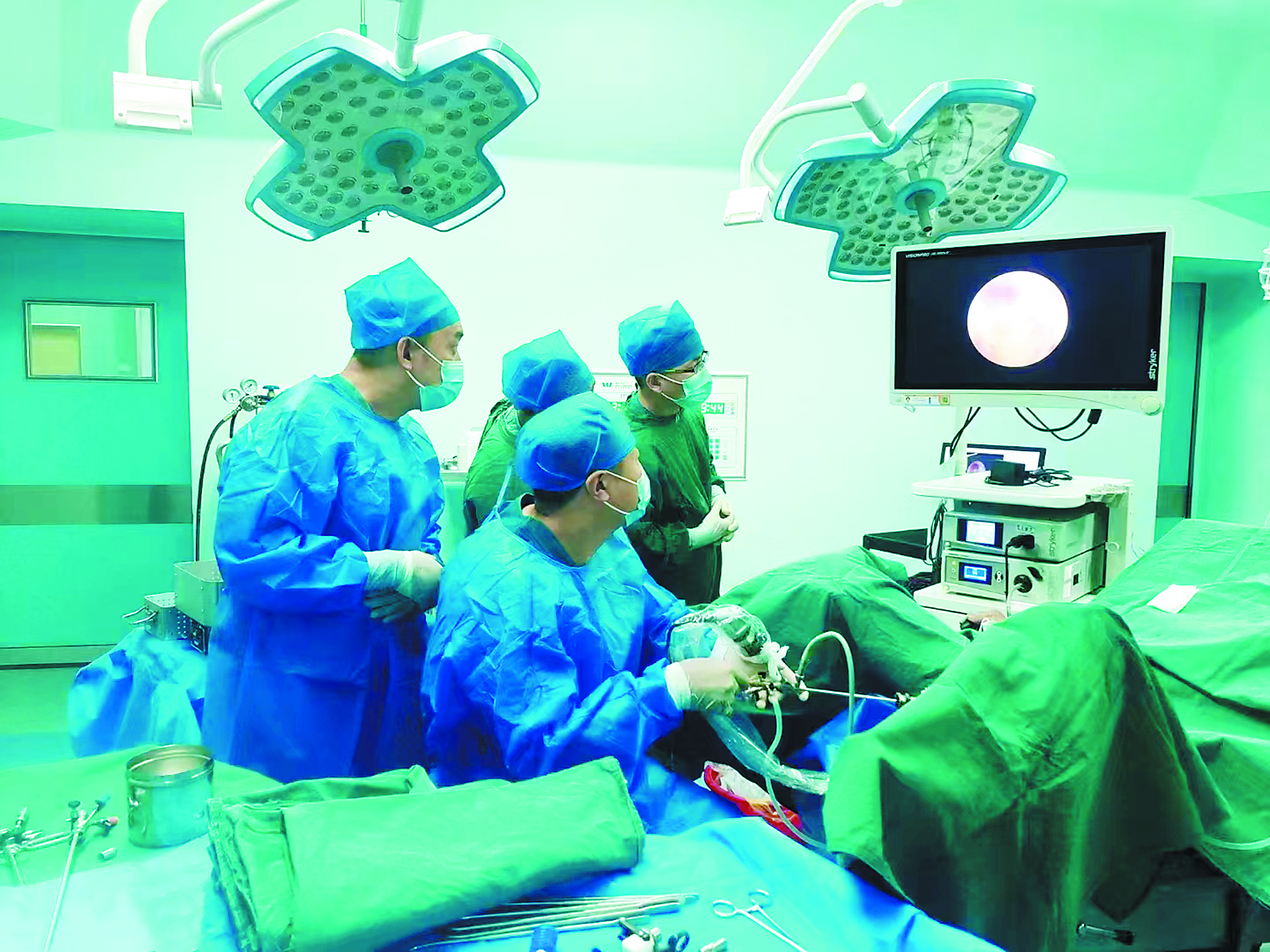 泌尿外科援疆專家指導(dǎo)受援地醫(yī)生使用鈥激光開展外科手術(shù)。