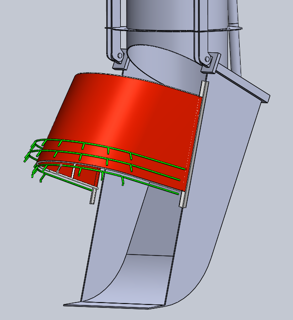 該設(shè)備的核心部件——防塵護(hù)罩,由九公司技術(shù)團(tuán)隊(duì)自主設(shè)計(jì),采用高強(qiáng)度、耐腐蝕材料制作,以半封閉流線型結(jié)構(gòu)對(duì)大鏟上方及兩側(cè)85%以上揚(yáng)塵關(guān)鍵區(qū)域?qū)崿F(xiàn)包裹覆蓋,能夠從作業(yè)源頭有效阻隔、控制粉塵擴(kuò)散。