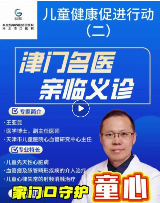 提醒!3月21日 天津市兒童醫(yī)院心內(nèi)科專家王亞昆來秦坐診