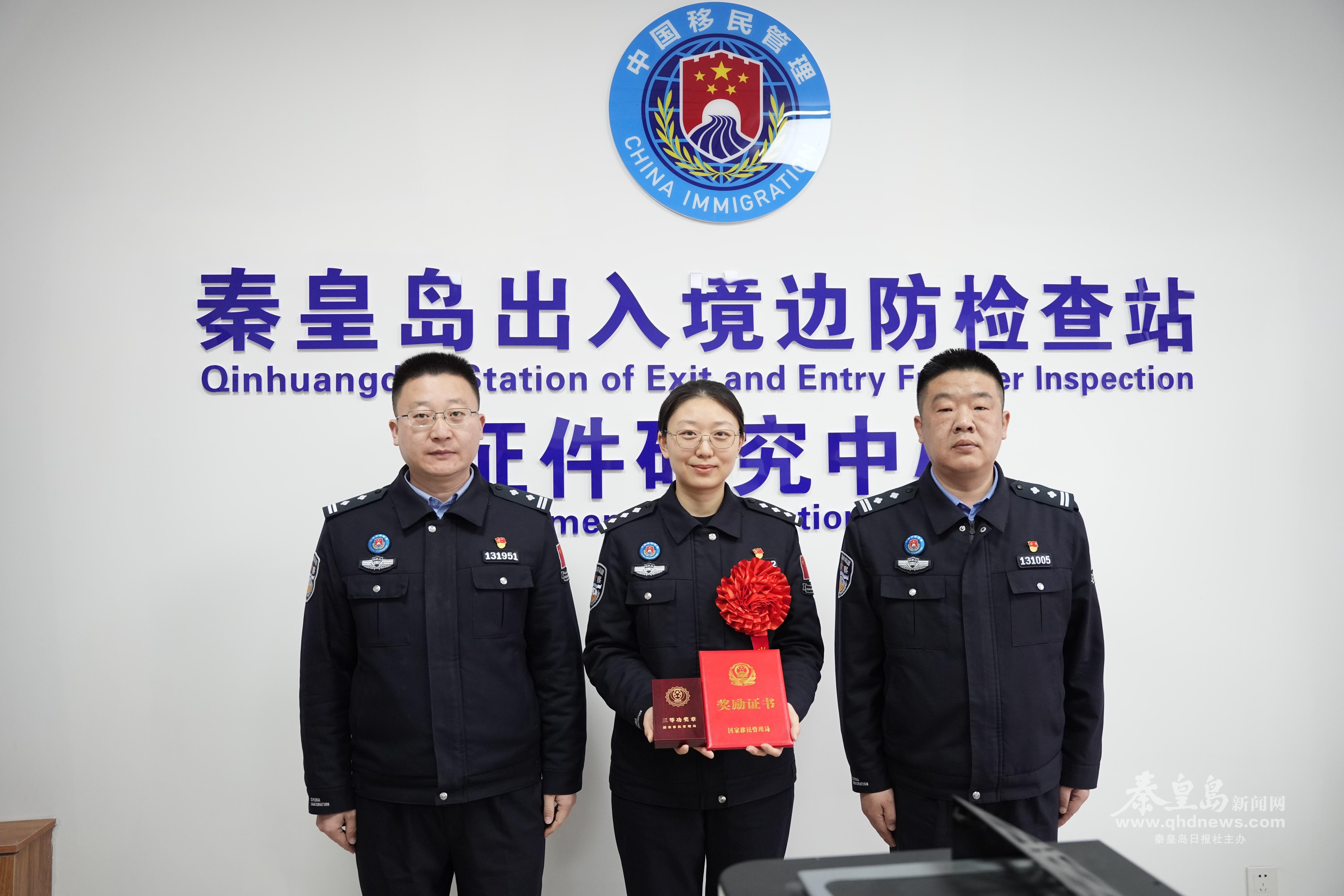 秦皇島出入境邊防檢查站組織開展“送獎到崗,喜報到家”活動
