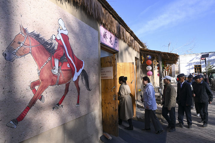 2026年4月3日,人們排隊進入新疆昭蘇縣燈塔知青館嬌龍廳獻花,追憶賀嬌龍同志為當?shù)亟?jīng)濟社會發(fā)展、文旅品牌打造、農(nóng)牧民增收致富作出的貢獻。新華社記者 胡虎虎 攝