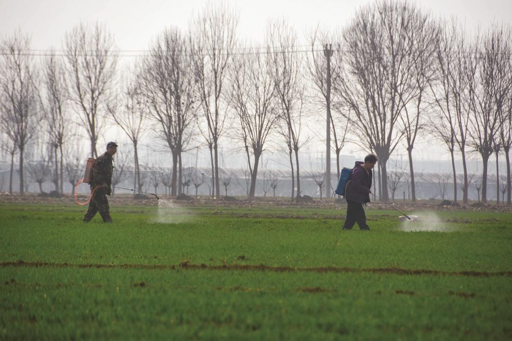 遵化市團(tuán)瓢莊鎮(zhèn)任莊子村農(nóng)戶正在對(duì)麥田進(jìn)行病蟲(chóng)害防治。