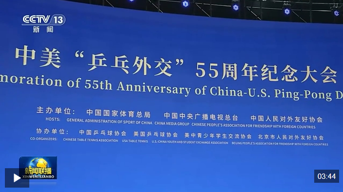 4月10日,習近平主席向中美“乒乓外交”55周年紀念大會暨中美青少年體育交流系列活動啟動儀式致賀信,高度評價“乒乓外交”的歷史和現(xiàn)實意義,鼓勵兩國各界人士特別是青年一代相知相親、攜手前行,為兩國關系注入強大動力和溫暖能量。習近平主席的賀信在中美各界人士中引發(fā)熱烈反響。