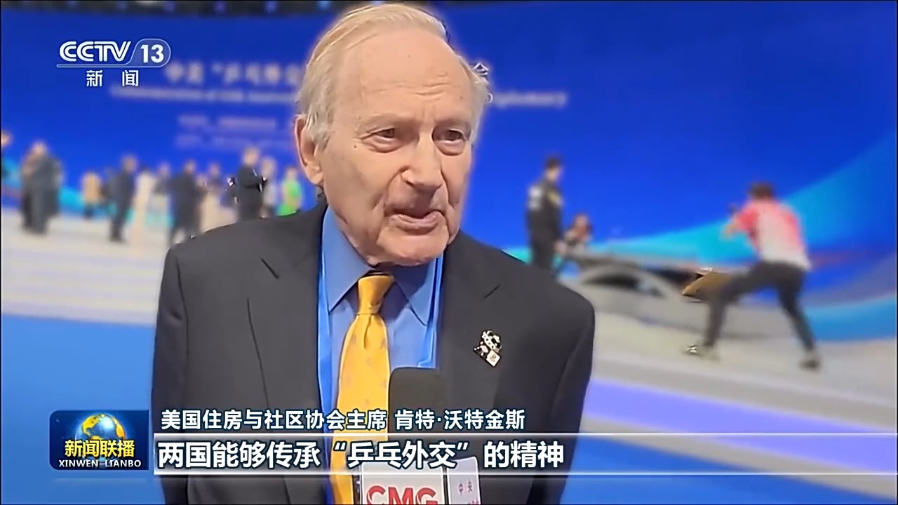 美國住房與社區(qū)協(xié)會主席 肯特·沃特金斯:我希望正如習主席所期待的,兩國能夠傳承“乒乓外交”的精神,像乒乓球運動員一樣良性競技,在彼此尊重的基礎上共享發(fā)展機遇,在面對全新的全球性挑戰(zhàn)時,共同發(fā)揮卓越引領作用。