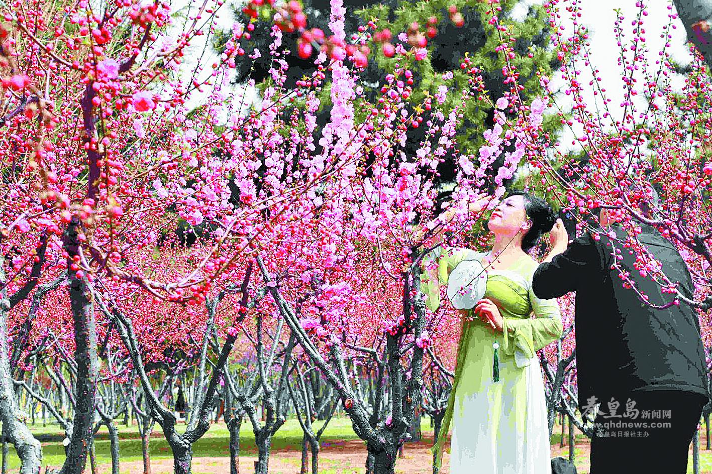 4月12日,市民在海港區(qū)新世紀(jì)公園拍照打卡。時(shí)下,園內(nèi)桃花、連翹等次第盛開(kāi),色彩斑斕、香氣四溢,吸引許多市民游客漫步賞景、拍照留念。